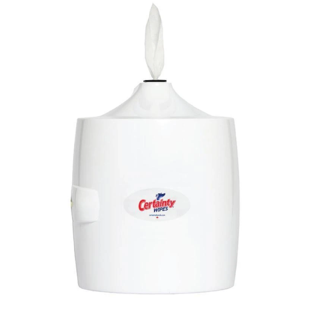 Distributeur mural pour les rouleaux de lingettes de marque Certainty.