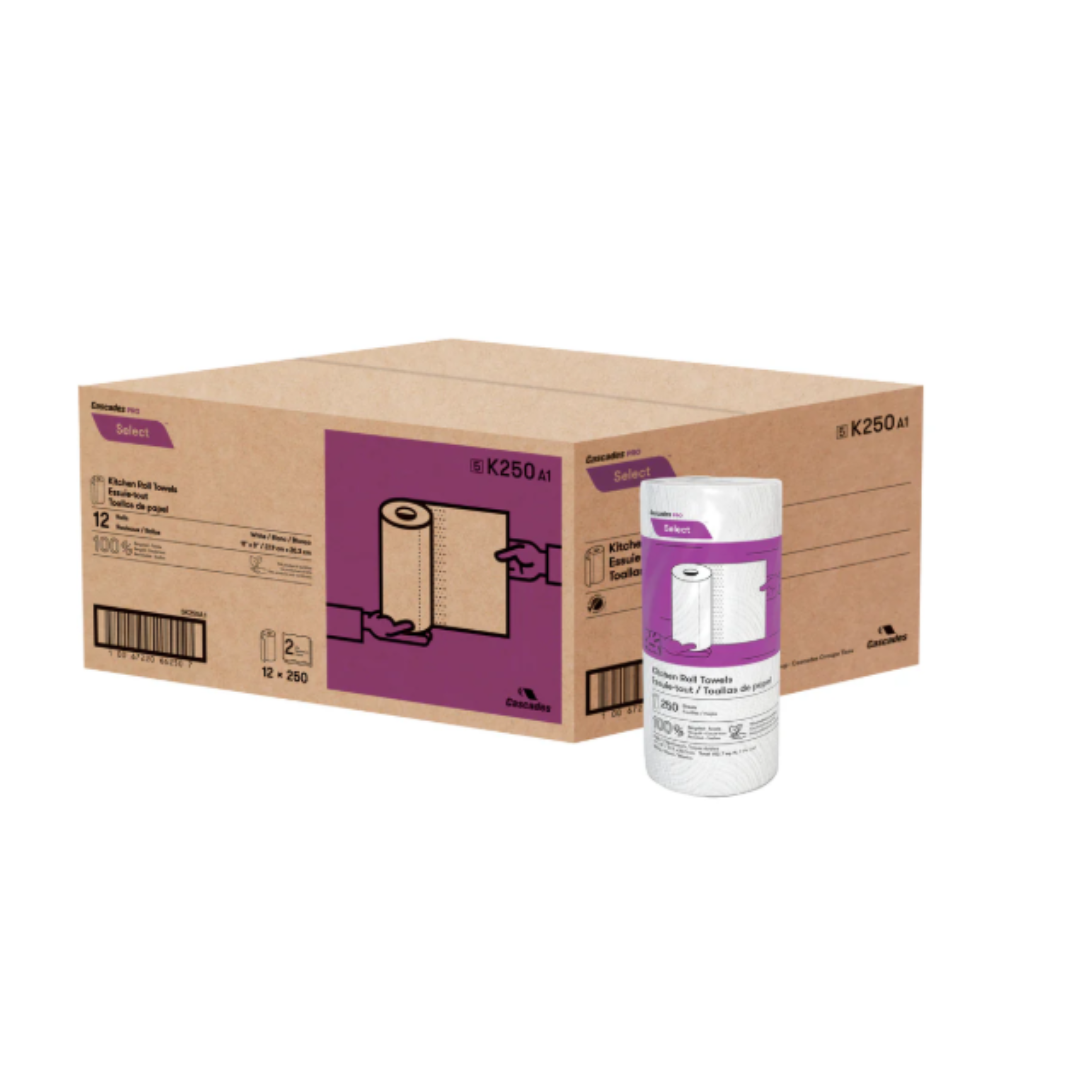 Les essuie-tout Cascades PRO Select® deux épaisseurs en rouleaux géants sont pratiques avec plus de feuilles par rouleau, idéaux pour éviter les pénuries et pour nettoyer les gros dégâts de manière efficace. Composés à 100 % de fibres recyclées, dont au moins 50 % proviennent de matières postconsommation, ces essuie-tout vous permettront de tout nettoyer en profondeur de manière écologique. En rencontrant les normes de l’EPA, ces essuie-tout sont parfaits pour nettoyer et essuyer les surfaces dans les établissements de restauration, les cuisines, les salles de classe et les cafétérias. Chaque rouleau comprend 250 feuilles à 2 plis de papier blanc recyclé, offrant une excellente solution pour répondre aux besoins variés de nettoyage. Convient au compostage dans les installations industrielles et municipales, et non au compostage à domicile.