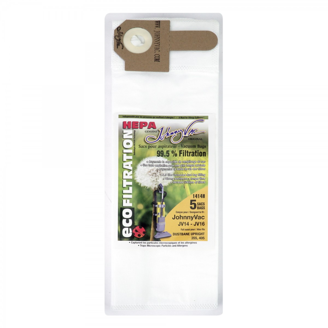 Sac microfiltre HEPA pour aspirateur vertical Johnny Vac JV14 et JV16 - Dustbane 355 et 405 - paquet de 5 sacs