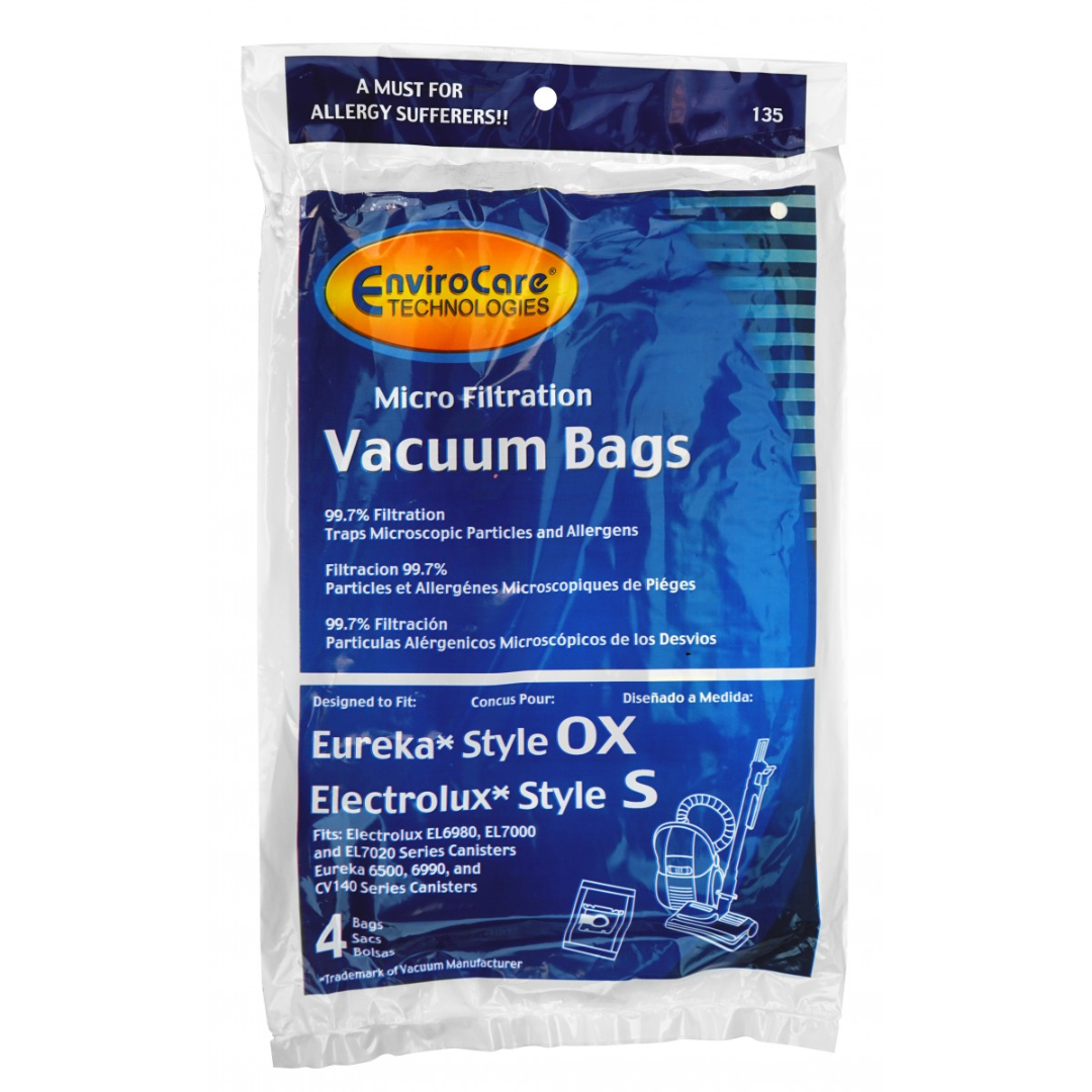 Sac microfiltre pour aspirateur Electrolux style S, Eureka style OX - Harmony - Oxygen - paquet de 4 sacs - Envirocare 135