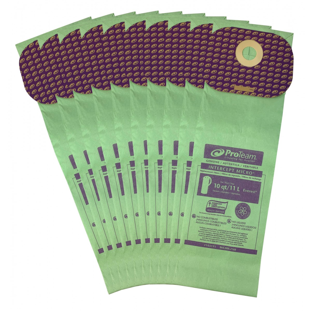 Sacs en papier pour aspirateur Proteam 11 L (10 pintes) Everest - paquet de 10 sacs - # 103191